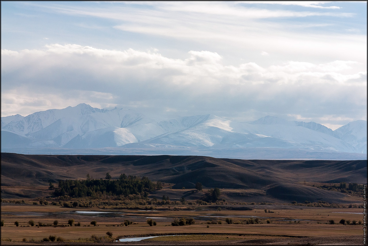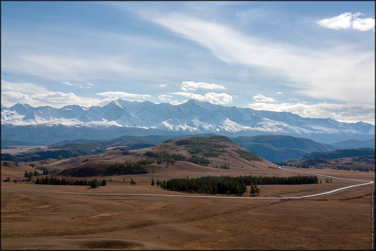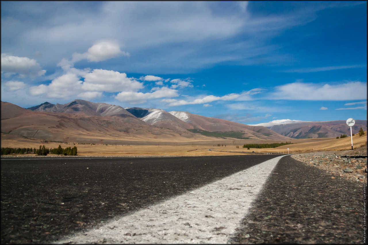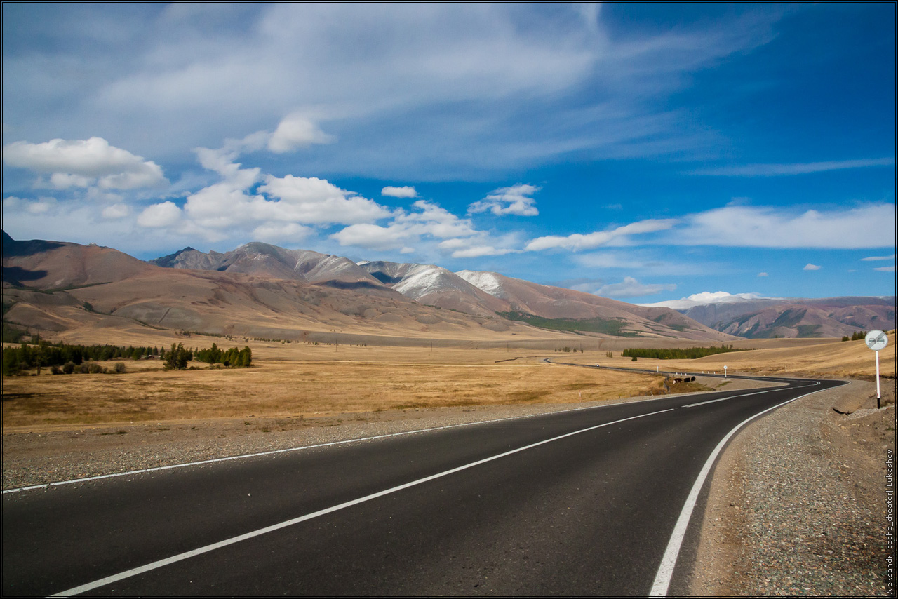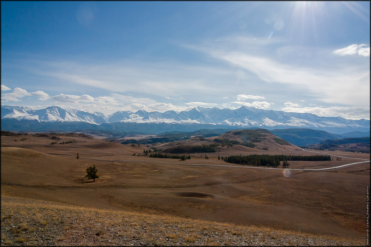 На третий день путешествия мы уехали с долины Чулышмана, снова поднялись на Улаганский перевал, захватив чудесную погоду, солнце и буйство осенних цветов. Вообще, к этому моменту мы на 100% выполнили план поездки, хотя в запасе у нас оставалось еще целых два дня. Стали думать. Додумались до того, что 100км бешеной собаке не крюк, и дико ломанулись покорять степи. Хотя бы проездом.