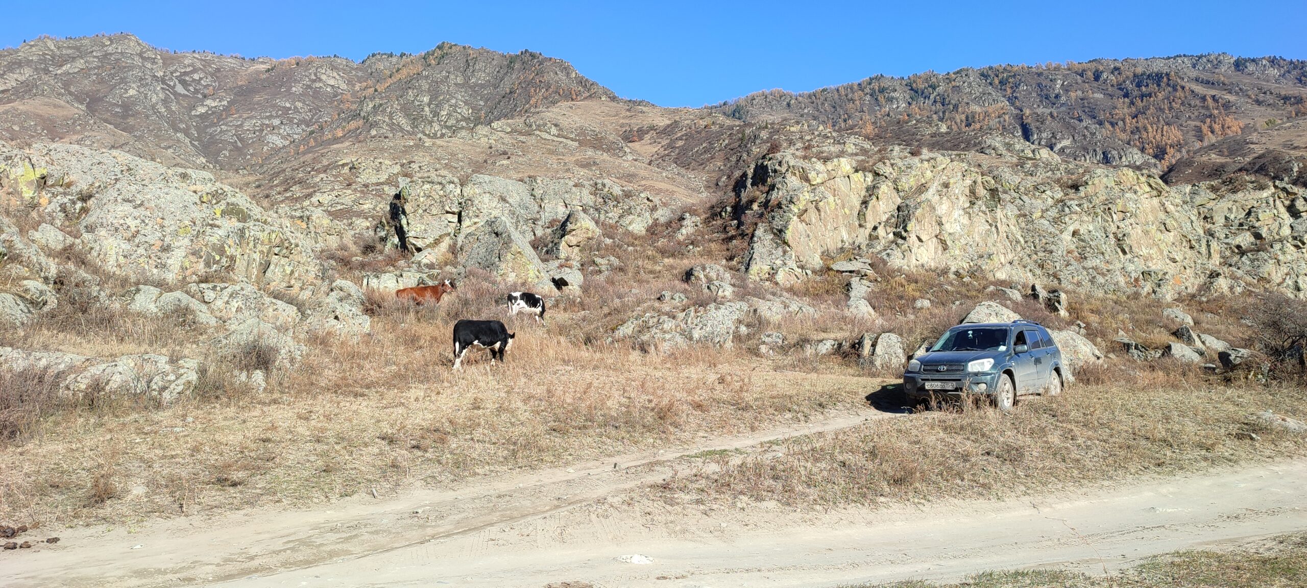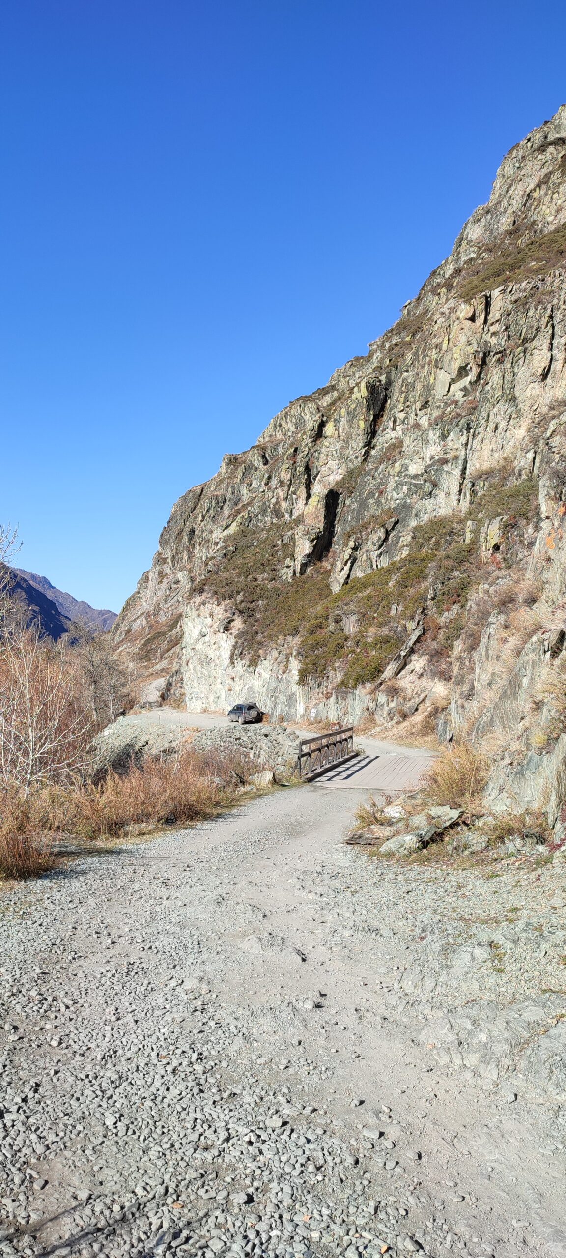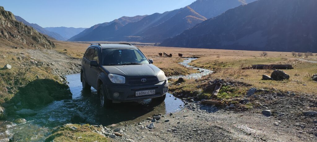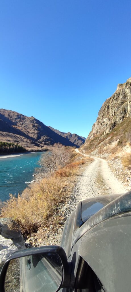 Место в самом конце пути очень сильно напомнило долину реки Чулышман, которую мы штурмовали как в сентябре далёкого 2014 года, так и в не менее далёком июле 2015 года. Такие же высокие крутые обрамляющие её горы, большая полноводная река, множество накатанных по полю дорог и смена пейзажа за каждым поворотом извилистой грунтовки.