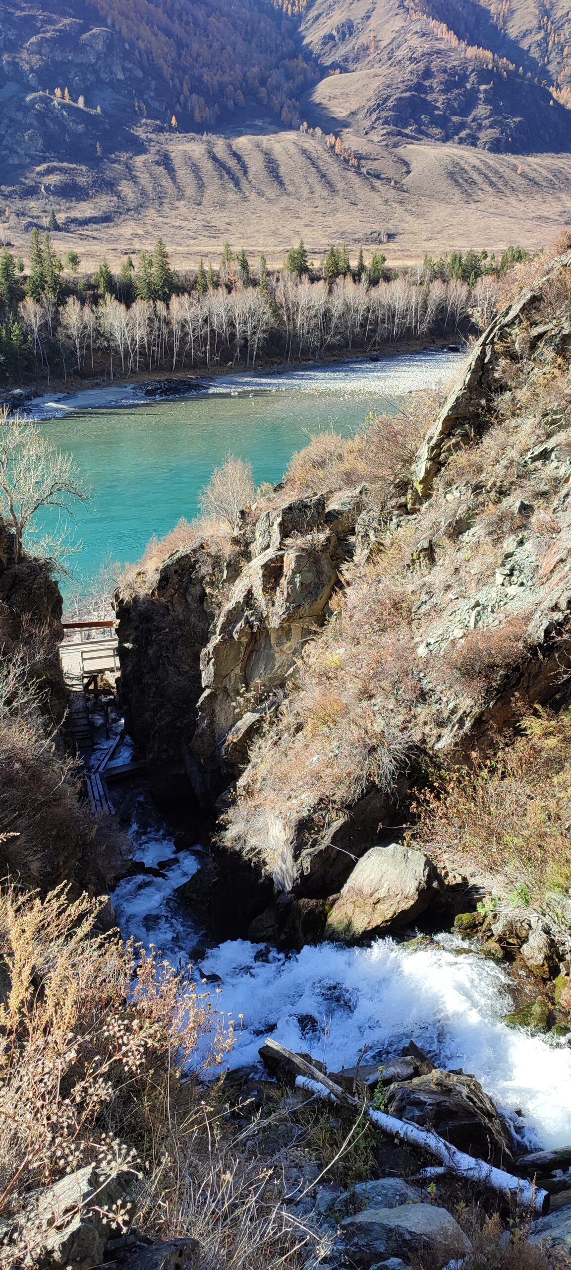 Теперь я знаю, что Чемальский тракт ни разу не заканчивается Чемалом и Чемальской ГЭС, и что самая красота этого района как раз за селом вдоль Катуни. Сегодня мы с семьёй проехали до самого тупика данного направления, за 7 км от села Куюс, непосредственно до водопада Бельтертуюк.